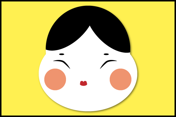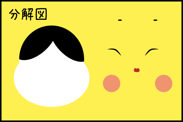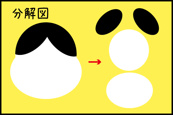 顔は、白い丸と楕円形、髪の部分は黒い楕円形が2つである。