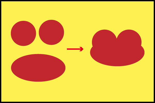 丸と楕円形を図のように重ねて、「パスファインダー」 から 「合体」 をクリック。