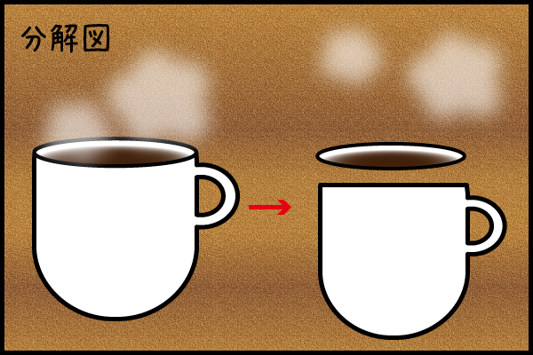 カップ本体と、上のコーヒーが入っている部分、そして湯気から出来ていることがわかる。