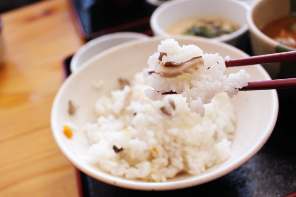 ご飯はほんのり味がついていて、美味しい。