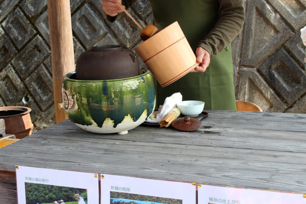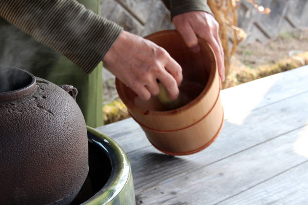 桶茶をたててくださる方が、桶に何杯か入れて・・・。