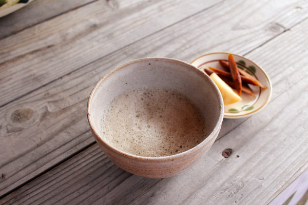 桶茶ってものが一体なんだかわからないけど、ちゃんとした伝統的な淹れ方をしてくれて100円ってんで、いただいてくことにしたんだ。