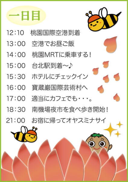 4月に出発する台湾旅行の計画表1日目が出来たぞ!!