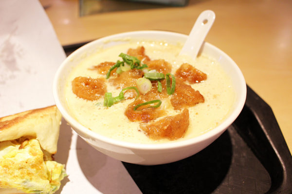 トッピングの油條(中華風揚げパン)もヒタヒタの感じが朝のお腹にちょうど良いよね!