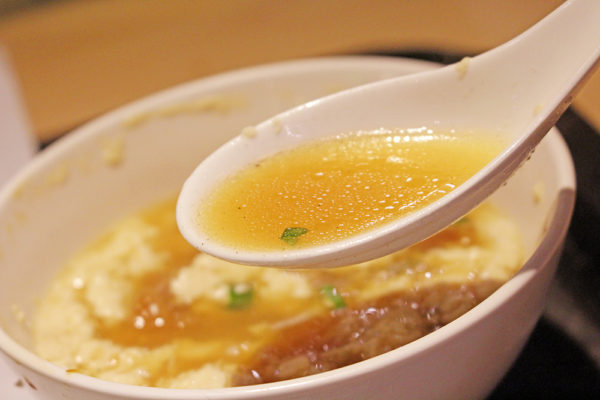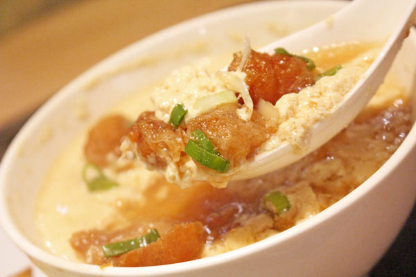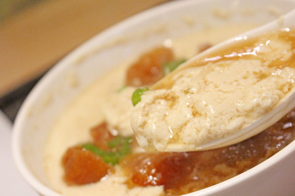 豆乳がスープによっておぼろ豆腐のように凝固してるね。