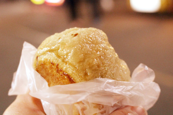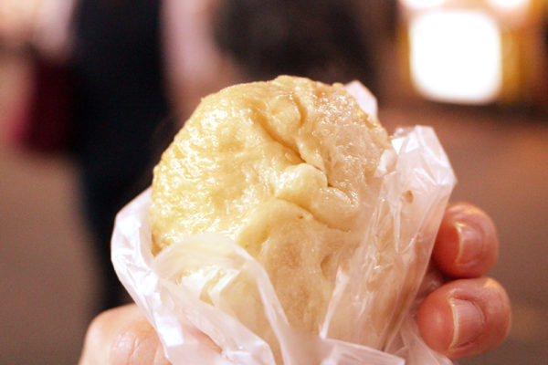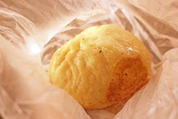 皮の上部分はツルっとモチっと、下は焦げ目だ。