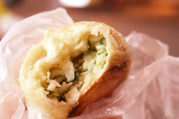 生煎包は中身が野菜と肉の2種類あって、どちらも1個から購入することが出来た。