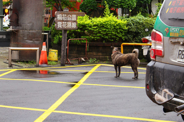 首輪着けているから飼い犬だと思うけど、放し飼いだね。