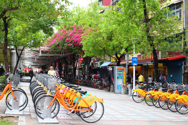 龍山寺の駅近くにはこんなにたくさんのレンタサイクルがあったよ。