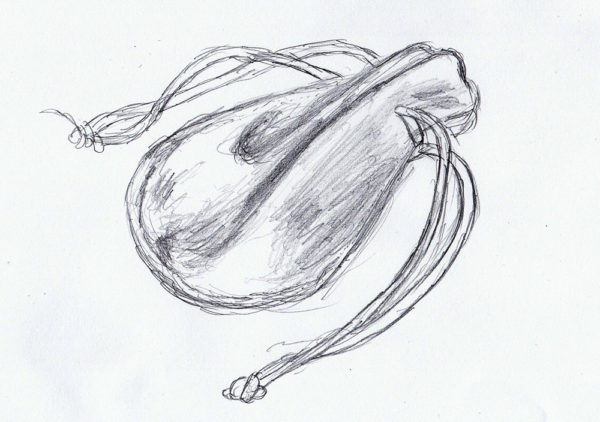 ま、それはさておき、今回のデッザンはいつもみたいに固い物体ではなく、柔らかい巾着。