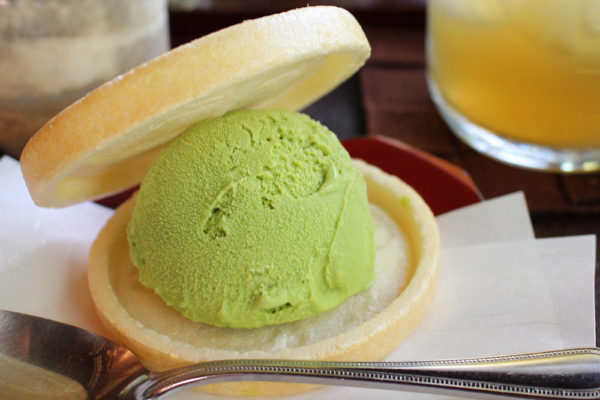アイス最中の抹茶と、りんご加賀ほうじ茶。