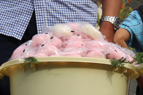 前の方とか場所にもよるけど、袋いっぱいに取る人もいれば、全く取れない人もいるね。