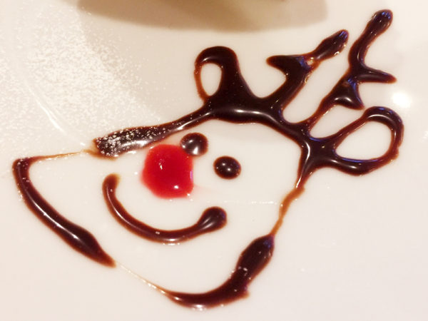 クリスマス時期にはこんな、サンタとトナカイのイラストをお皿に描いてくれるんだね!