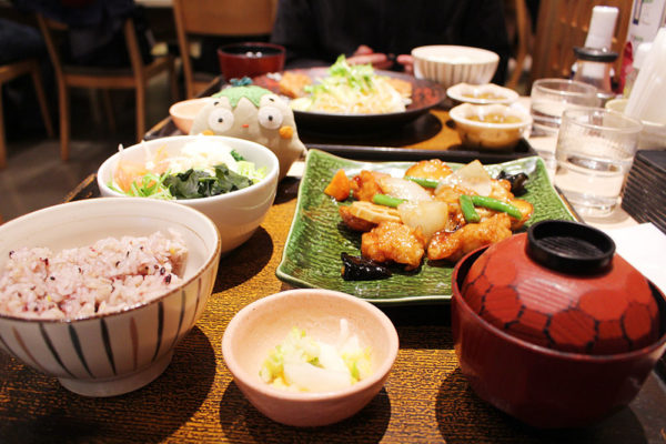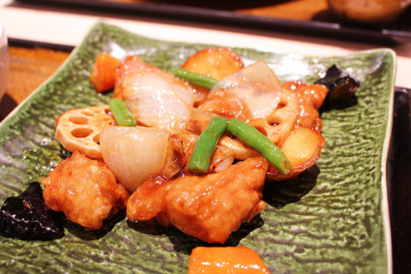 がりぼんが注文したのは、鶏と野菜の黒酢あん定食。