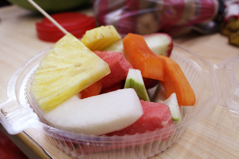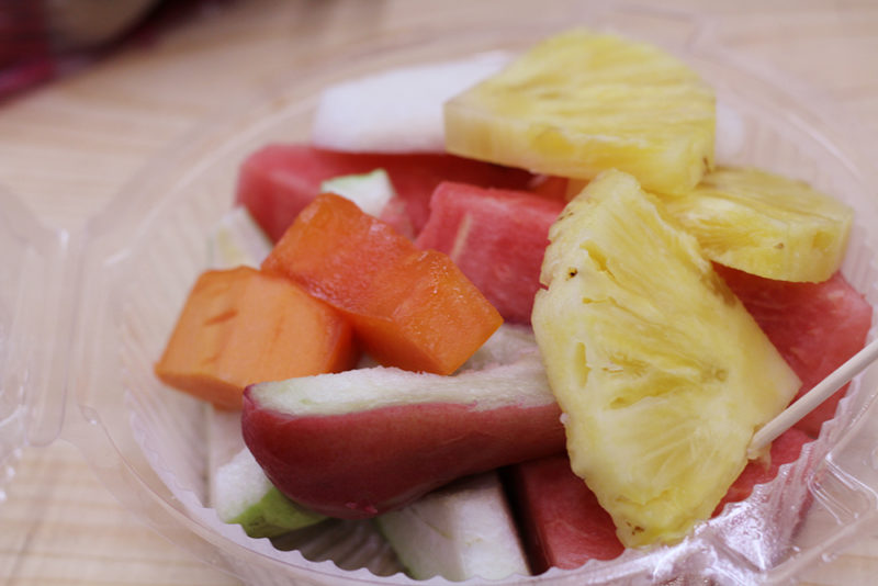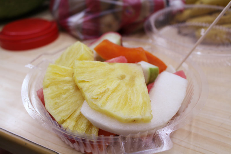 コチラのお店ではカットフルーツが1種類ではなく、いろんな種類のミックスでパック売りされていたの。