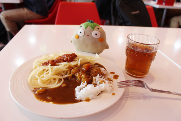 がりぼん、この時メチャクチャお腹空いていたからさ、ケーキのお皿にどっかりとカレー&パスタ。