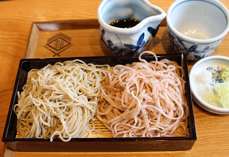 なんか右の蕎麦がうっすらピンクなのは、桜切りというお蕎麦みたい。