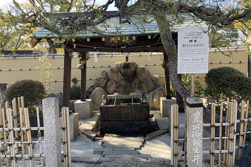 このお寺には、秀吉の産湯(うぶゆ)として伝わる、井戸があるんだ!